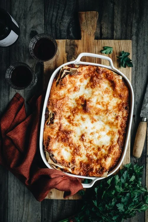 The key to any great lasagne in my opinion is *nailing* the sauce. For me, it’s got to be rich, thick and chunky. Because of this, I like to sauté the onion, carrots and mince until they begin to caramelise and brown. It’s so important to continue sautéing until you get this happening, because otherwise you end up adding the tomato sauce/passata and kind of boiling everything in it, rather than using the tomatoes to enrich the caramelisation and lift all the browned bits off the pan. Another key to making an amazing sauce, is always adding a generous splash of wine. You can use either dry white wine for a lighter flavour or a dry red wine for a deeper, richer flavour. I generally just use whatever I have in the house but do love a red wine sauce for Winter.